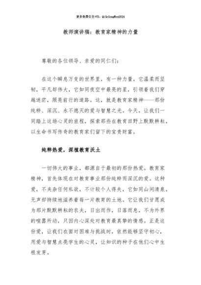 / 【七哥公文】2024年:教师演讲稿:教育家精神的力量+更多免费公文+VX:QiGeGongWen2024