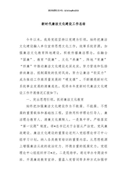 / 【七哥公文】2024年:新时代廉洁文化建设工作总结+更多免费公文+VX:QiGeGongWen2024
