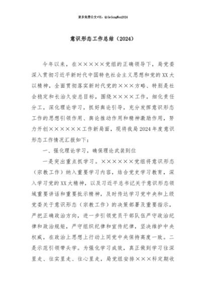 / 【七哥公文】2024年:意识形态工作总结(2024)+更多免费公文+VX:QiGeGongWen2024