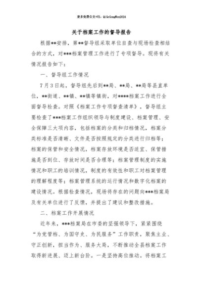 / 【七哥公文】2024年:关于档案工作的督导报告+更多免费公文+VX:QiGeGongWen2024