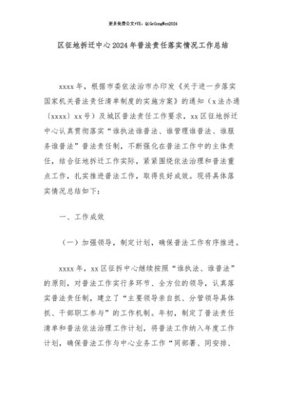 / 【七哥公文】2024年:区征地拆迁中心2024年普法责任落实情况工作总结+更多免费公文+VX:QiGeGongWen2024