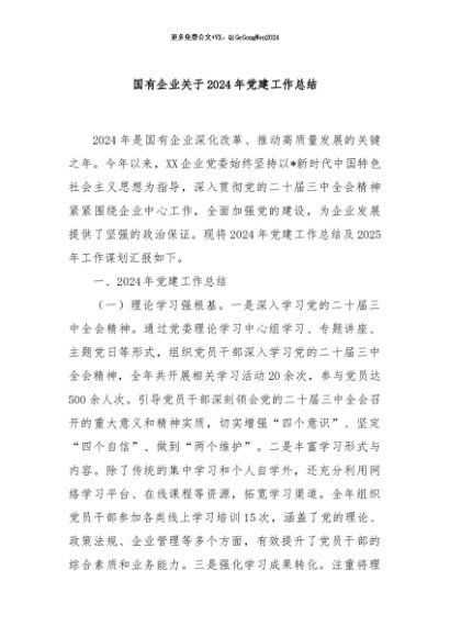 / 【七哥公文】2024年:国有企业关于2024年党建工作总结+更多免费公文+VX:QiGeGongWen2024