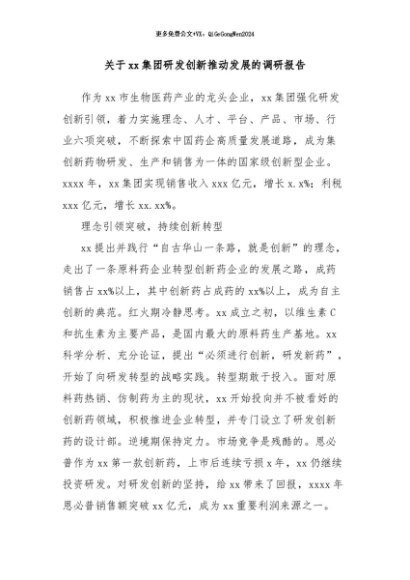 / 【七哥公文】2024年:关于xx集团研发创新推动发展的调研报告+更多免费公文+VX:QiGeGongWen2024