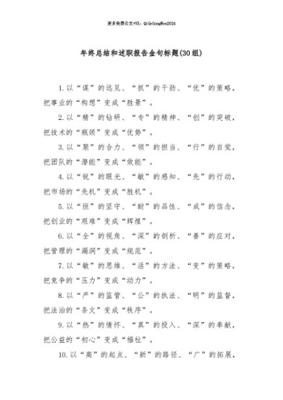 / 【七哥公文】2024年:(30组)年终总结和述职报告金句标题+更多免费公文+VX:QiGeGongWen2024
