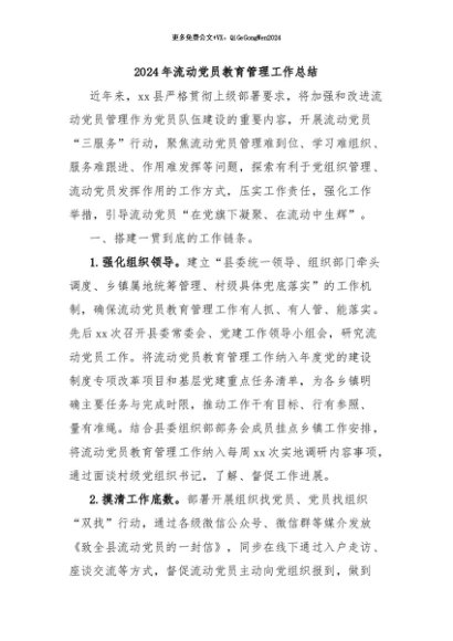 / 【七哥公文】2024年:2024年流动党员教育管理工作总结+更多免费公文+VX:QiGeGongWen2024