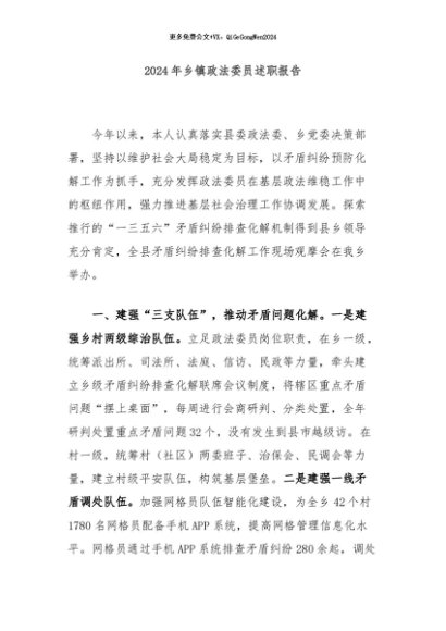 / 【七哥公文】2024年:2024年乡镇政法委员述职报告+更多免费公文+VX:QiGeGongWen2024