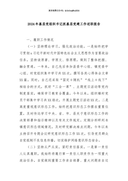 / 【七哥公文】2024年:2024年基层党组织书记抓基层党建工作述职报告+更多免费公文+VX:QiGeGongWen2024