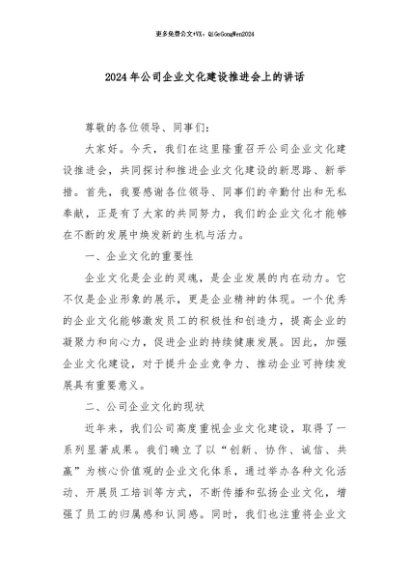 / 【七哥公文】2024年:2024年公司企业文化建设推进会上的讲话+更多免费公文+VX:QiGeGongWen2024