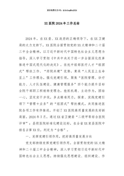 / 【七哥公文】2024年:XX医院2024年工作总结+更多免费公文+VX:QiGeGongWen2024