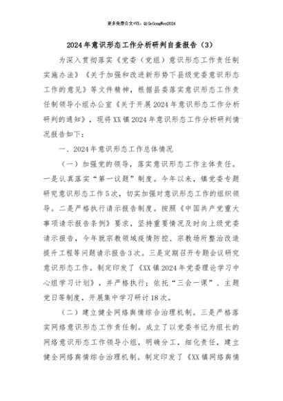 / 【七哥公文】2024年:2024年意识形态工作分析研判自查报告(3)+更多免费公文+VX:QiGeGongWen2024