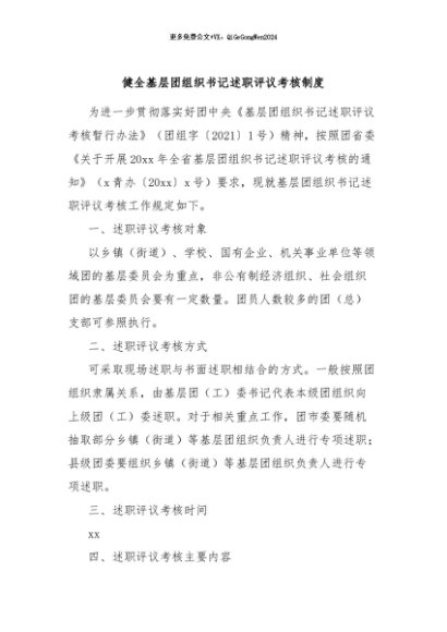 【七哥公文】2024年:健全基层团组织书记述职评议考核制度+更多免费公文+VX:QiGeGongWen2024