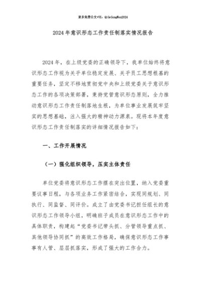 / 【七哥公文】2024年:2024年意识形态工作责任制落实情况报告+更多免费公文+VX:QiGeGongWen2024