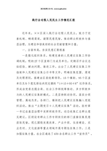 / 【七哥公文】2024年:践行全过程人民民主工作情况汇报+更多免费公文+VX:QiGeGongWen2024