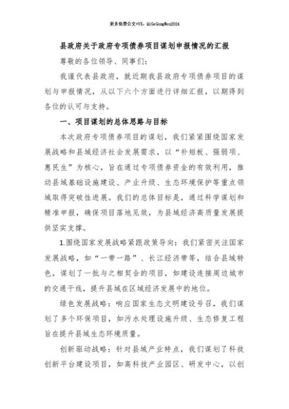 / 【七哥公文】2024年:县政府关于政府专项债券项目谋划申报情况的汇报+更多免费公文+VX:QiGeGongWen2024