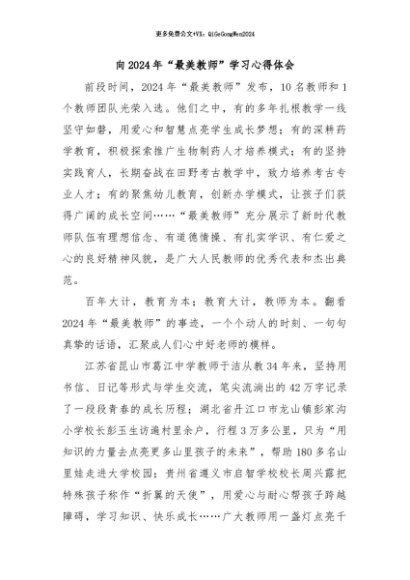 / 【七哥公文】2024年:向2024年“最美教师”学习心得体会+更多免费公文+VX:QiGeGongWen2024