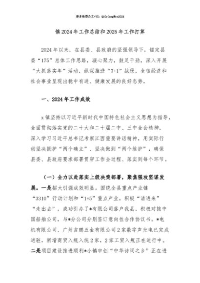 / 【七哥公文】2024年:镇2024年工作总结和2025年工作打算+更多免费公文+VX:QiGeGongWen2024