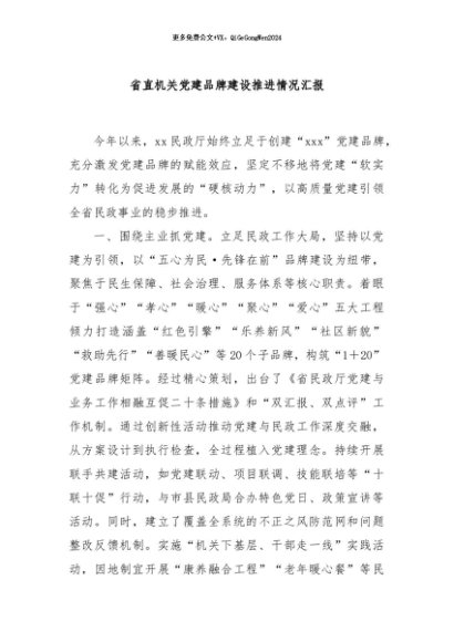 / 【七哥公文】2024年:省直机关党建品牌建设推进情况汇报+更多免费公文+VX:QiGeGongWen2024