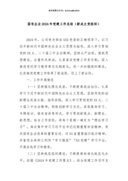 / 【七哥公文】2024年:国有企业2024年党建工作总结(新成立党组织)+更多免费公文+VX:QiGeGongWen2024