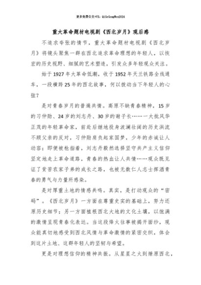 / 【七哥公文】2024年:重大革命题材电视剧《西北岁月》观后感+更多免费公文+VX:QiGeGongWen2024