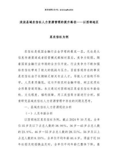 【七哥公文】2024年:浅谈县域农信社人力资源管理的提升路径——以西部地区某农信社为例+更多免费公文+VX:QiGeGongWen2024