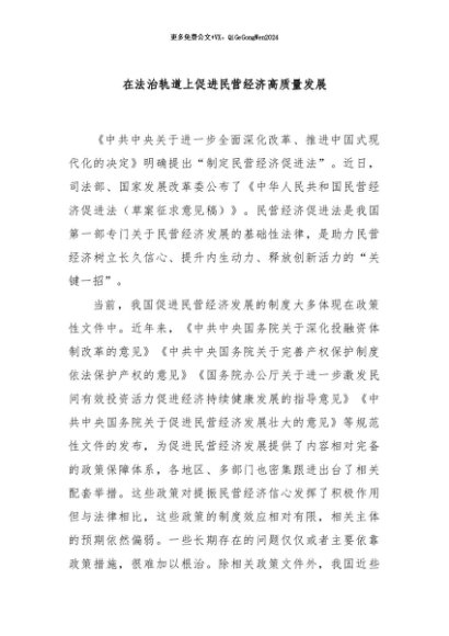 【七哥公文】2024年:在法治轨道上促进民营经济高质量发展+更多免费公文+VX:QiGeGongWen2024