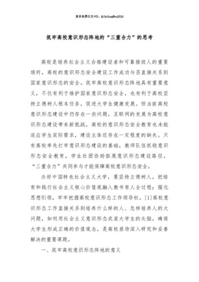 / 【七哥公文】2024年:筑牢高校意识形态阵地的“三重合力”的思考+更多免费公文+VX:QiGeGongWen2024