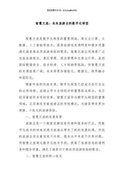 【七哥公文】2024年:智慧文旅:未来旅游业的数字化转型+更多免费公文+VX:QiGeGongWen2024