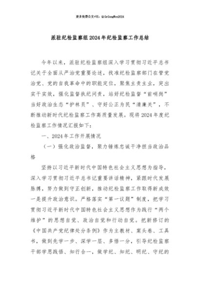 / 【七哥公文】2024年:派驻纪检监察组2024年纪检监察工作总结+更多免费公文+VX:QiGeGongWen2024