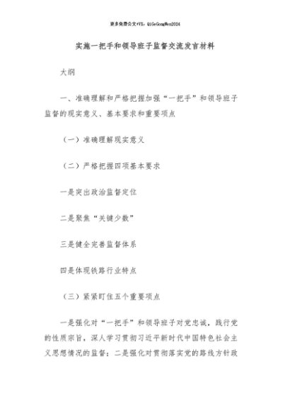 / 【七哥公文】2024年:实施一把手和领导班子监督交流发言材料+更多免费公文+VX:QiGeGongWen2024