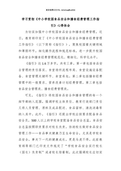 【七哥公文】2024年:学习贯彻《中小学校园食品安全和膳食经费管理工作指引》心得体会+更多免费公文+VX:QiGeGongWen2024