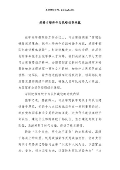 / 【七哥公文】2024年:把将才培养作为战略任务来抓+更多免费公文+VX:QiGeGongWen2024