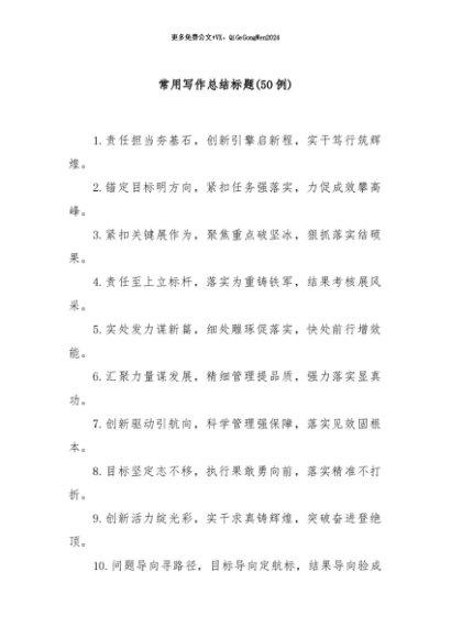 / 【七哥公文】2024年:(50例)常用写作总结标题+更多免费公文+VX:QiGeGongWen2024