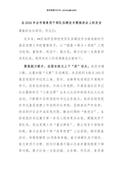 【七哥公文】2024年:在2024年全市高素质干部队伍建设专题推进会上的发言 (1)+更多免费公文+VX:QiGeGongWen2024