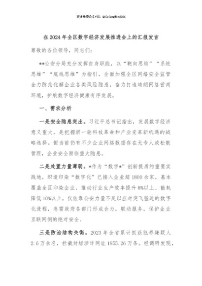 【七哥公文】2024年:在2024年全区数字经济发展推进会上的汇报发言 (1)+更多免费公文+VX:QiGeGongWen2024