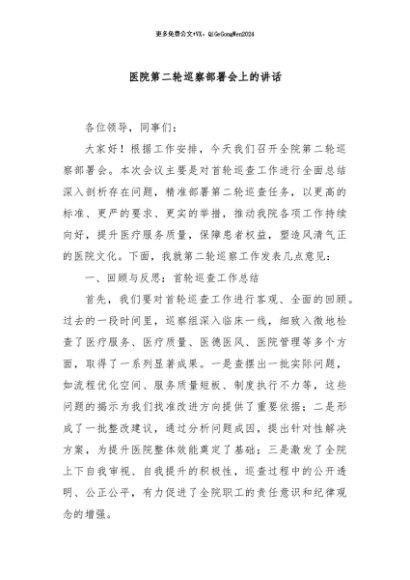 / 【七哥公文】2024年:医院第二轮巡察部署会上的讲话+更多免费公文+VX:QiGeGongWen2024