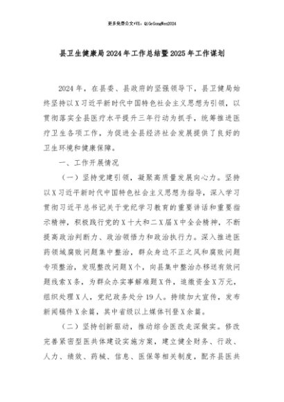 【七哥公文】2024年:县卫生健康局2024年工作总结暨2025年工作谋划+更多免费公文+VX:QiGeGongWen2024