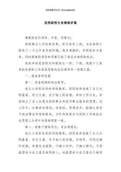 / 【七哥公文】2024年:医院副院长竞聘演讲稿+更多免费公文+VX:QiGeGongWen2024