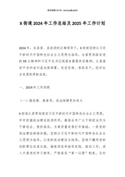 / 【七哥公文】2024年:X街道2024年工作总结及2025年工作计划+更多免费公文+VX:QiGeGongWen2024