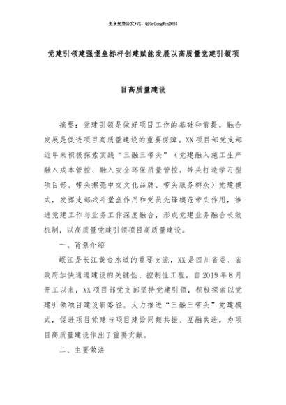 【七哥公文】2024年:党建引领建强堡垒标杆创建赋能发展以高质量党建引领项目高质量建设+更多免费公文+VX:QiGeGongWen2024