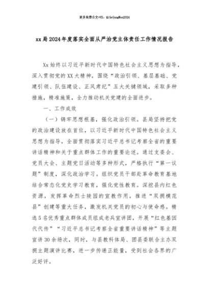 【七哥公文】2024年:xx局2024年度落实全面从严治党主体责任工作情况报告+更多免费公文+VX:QiGeGongWen2024