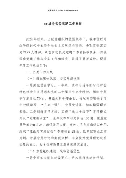 / 【七哥公文】2024年:xx机关党委党建工作总结 (1)+更多免费公文+VX:QiGeGongWen2024