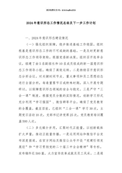 / 【七哥公文】2024年:2024年意识形态工作情况总结及下一步工作计划+更多免费公文+VX:QiGeGongWen2024