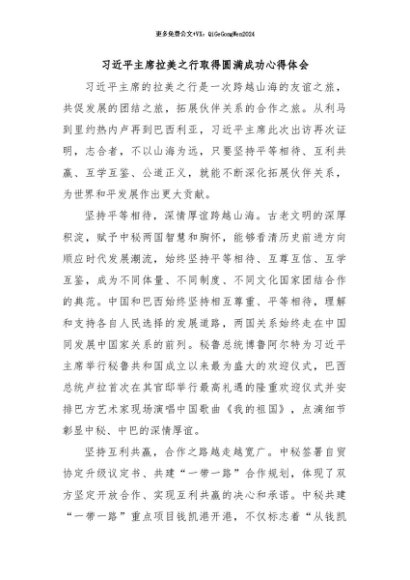 / 【七哥公文】2024年:习近平主席拉美之行取得圆满成功心得体会+更多免费公文+VX:QiGeGongWen2024