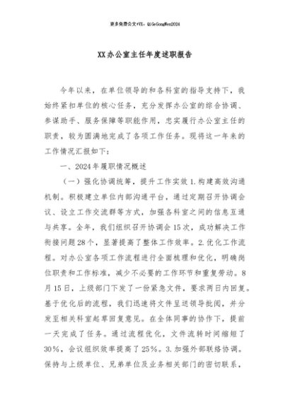 / 【七哥公文】2024年:XX办公室主任年度述职报告+更多免费公文+VX:QiGeGongWen2024