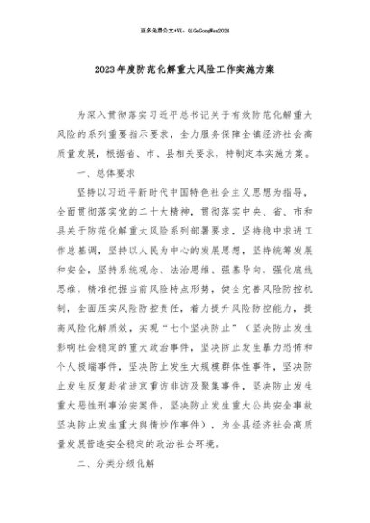 / 【七哥公文】2024年:2023年度防范化解重大风险工作实施方案+更多免费公文+VX:QiGeGongWen2024