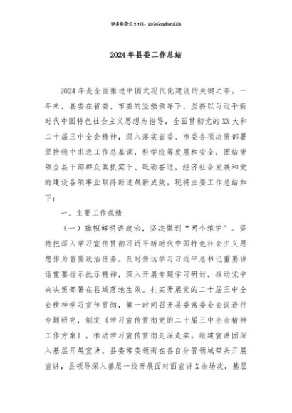 / 【七哥公文】2024年:2024年县委工作总结 (1)+更多免费公文+VX:QiGeGongWen2024