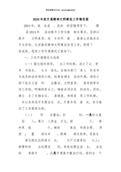 / 【七哥公文】2024年:镇2024年度开展精神文明建设工作情况报告+更多免费公文+VX:QiGeGongWen2024