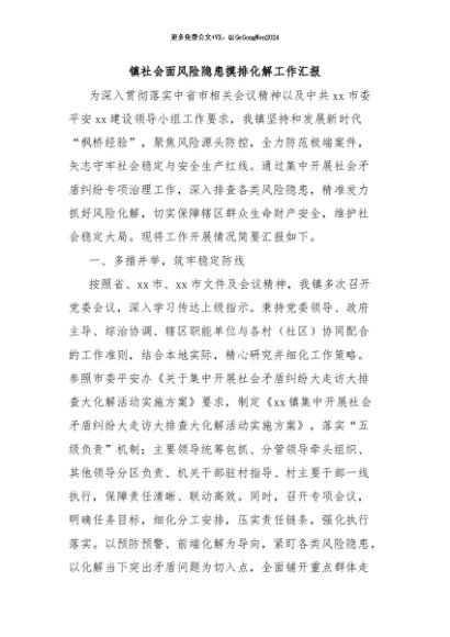 / 【七哥公文】2024年:镇社会面风险隐患摸排化解工作汇报+更多免费公文+VX:QiGeGongWen2024
