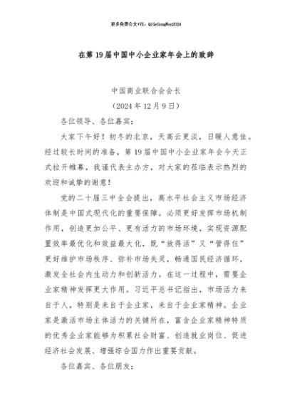 / 【七哥公文】2024年:在第19届中国中小企业家年会上的致辞+更多免费公文+VX:QiGeGongWen2024