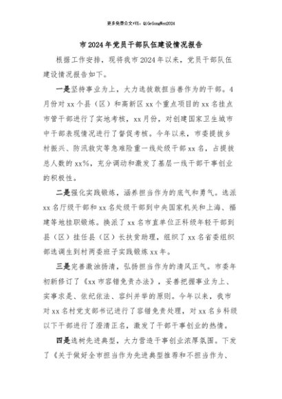 / 【七哥公文】2024年:市2024年党员干部队伍建设情况报告+更多免费公文+VX:QiGeGongWen2024